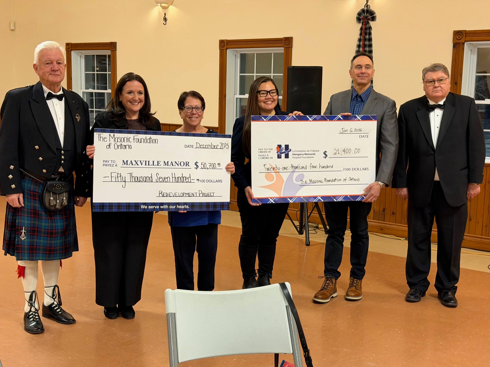 Donation to the Maxville Manor from Glengarry Highland Lodge.