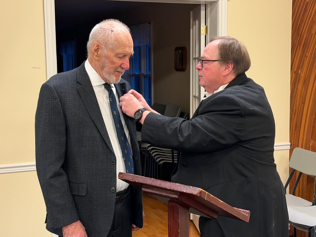District Deputy Grand Master presenting a 50 year pin to Bro. James Pattengale.